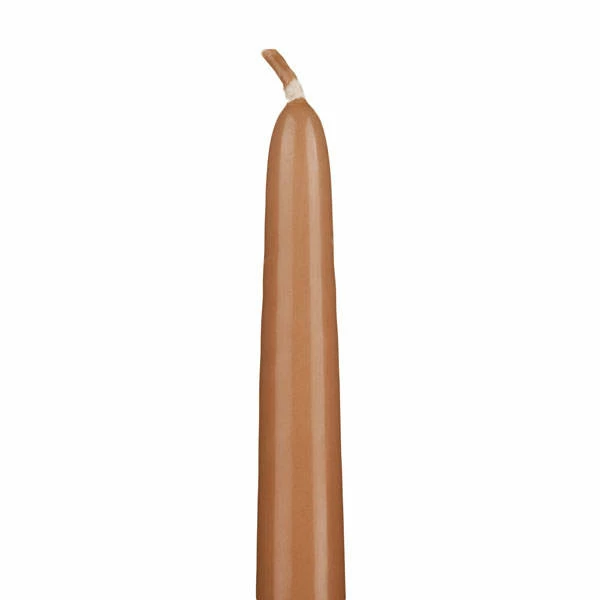 These 9.5 Inch Warm Tan Tapers are created using the dipping method of candle making, each 9.5 Inch Taper has a white core.