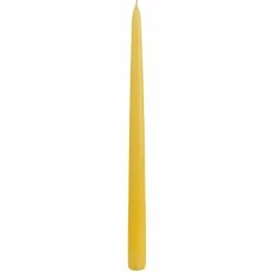This 12 inch yellwo taper candle is hand dipped. It is dripless, clean burning and has a self fitting base!