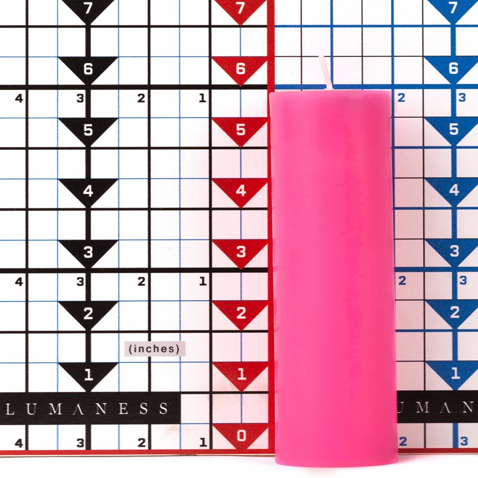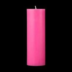 These 2×6 pillars are poured so the Hot Pink color is solid throughout the candle.