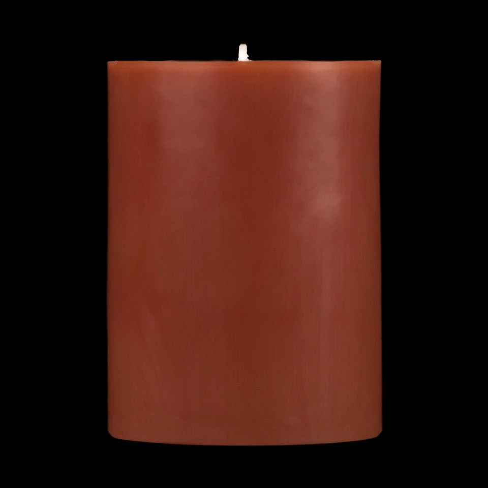 These 3×4 pillars are poured so the Brown color is solid throughout the candle.