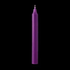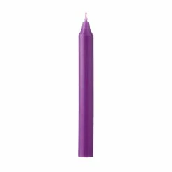 Our 7 Inch Purple Premium Quality European Tapers are made using a traditional drawn method producing rich color and texture. Each 7 Inch Taper is solid-colored throughout and burns about 1 inch per hour. They are smokeless, dripless, fragrance-free. Approximately 7/8″ in diameter, these 7 Inch straight tapers fit all standard taper holders.
